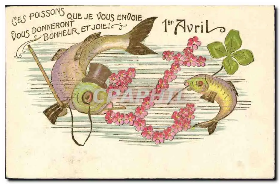 Cartes postales Fantaisie Fleurs Poissons 1er Avril