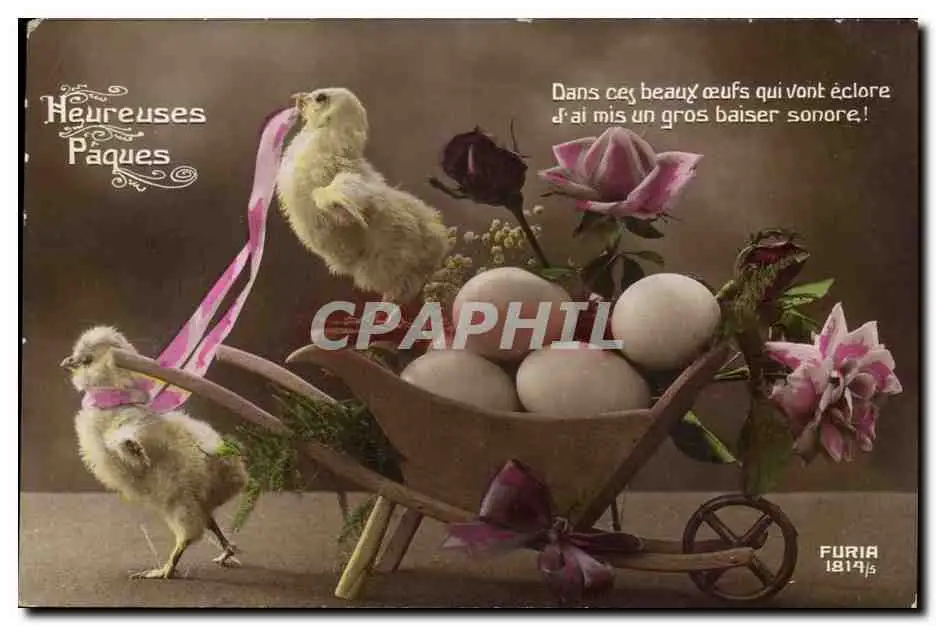 Cartes postales Fantaisie Heureuse Paques Poussins EAster