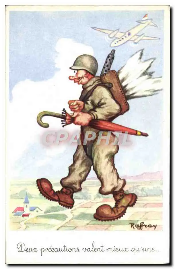 Cartes postales Fantaisie Humour Soldat Militaria Avion