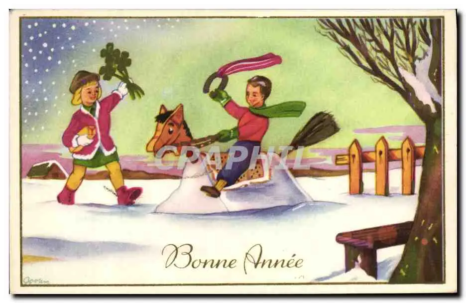 Cartes postales Fantaisie Illustrateur Enfants Cheval