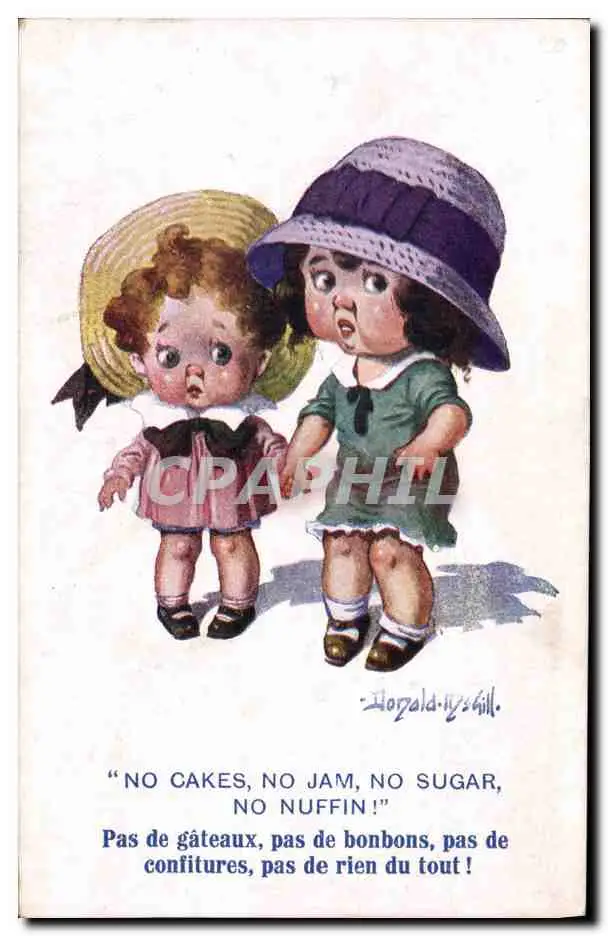 Cartes postales Fantaisie Illustrateur Enfants Donald Mc Gill No cakes No jam no suger No Nuffin