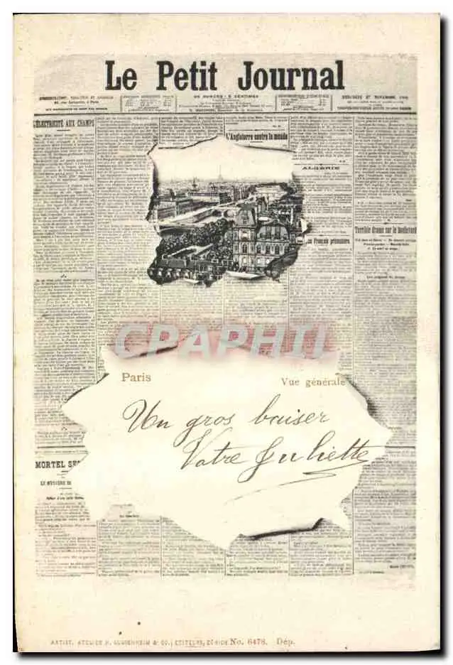 Cartes postales Fantaisie Journaux Le Petit Journal Paris Hotel de Ville Tour Eiffel TOP