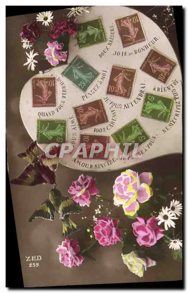 Cartes postales Fantaisie Langage des timbres Semeuse