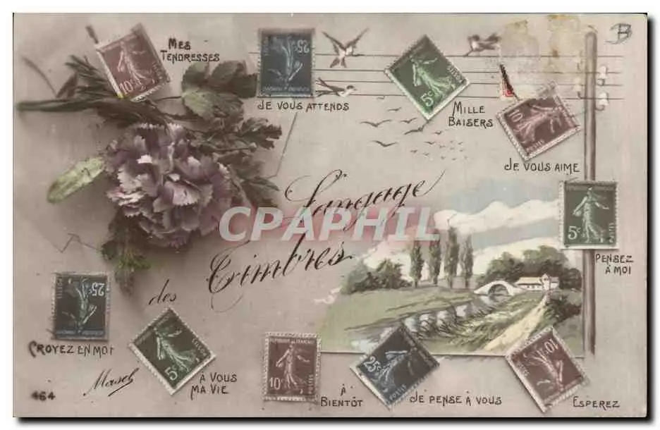 Cartes postales Fantaisie Langage des timbres Semeuse