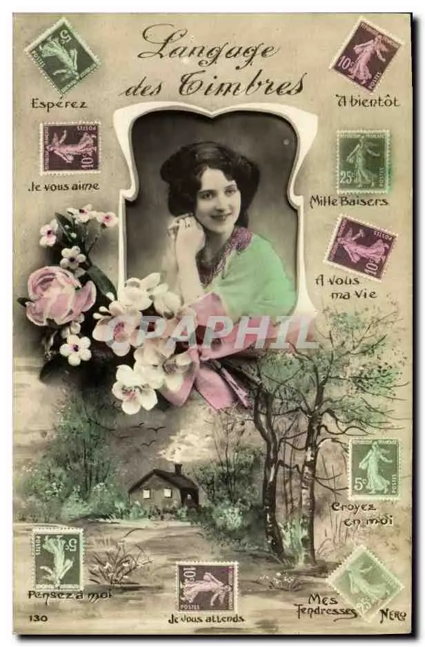 Cartes postales Fantaisie Langage des timbres Semeuse