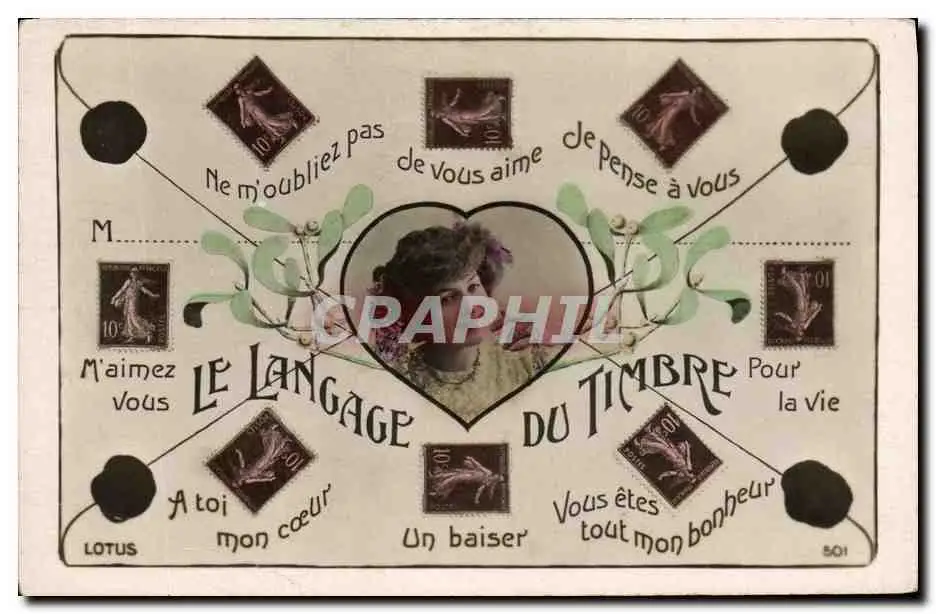 Cartes postales Fantaisie Langage des timbres Semeuse 10c