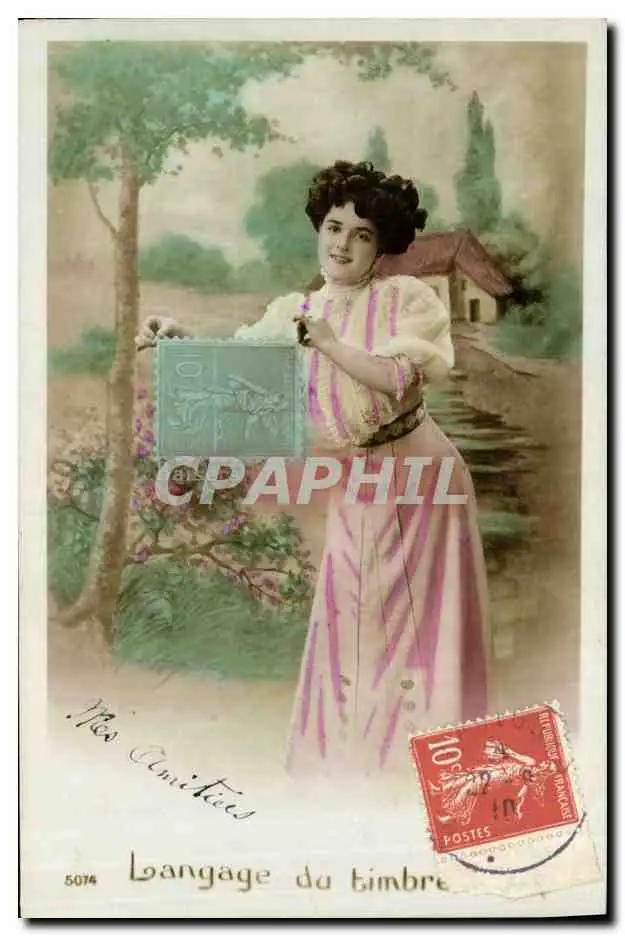 Cartes postales Fantaisie Langage du timbre Semeuse 10c Femme