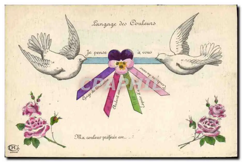 Cartes postales Fantaisie Le langage des couleurs Colombes