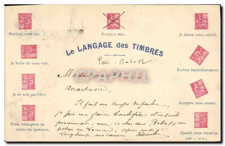 Cartes postales Fantaisie Le langage des timbres Moucon