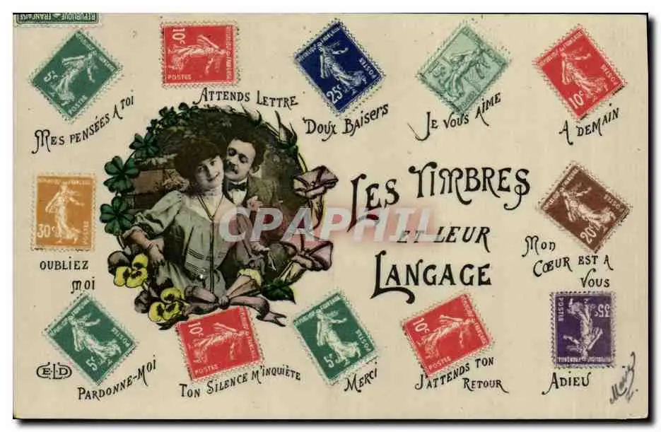 Cartes postales Fantaisie Les timbres et leur Langage Semeuse