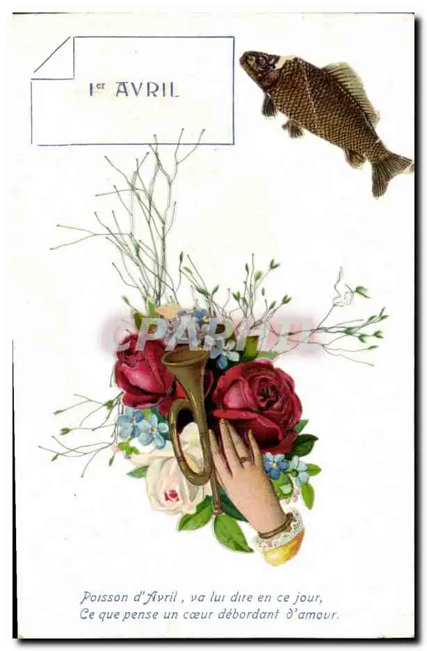 Cartes postales Fantaisie Main Fleurs Poisson 1er Avril