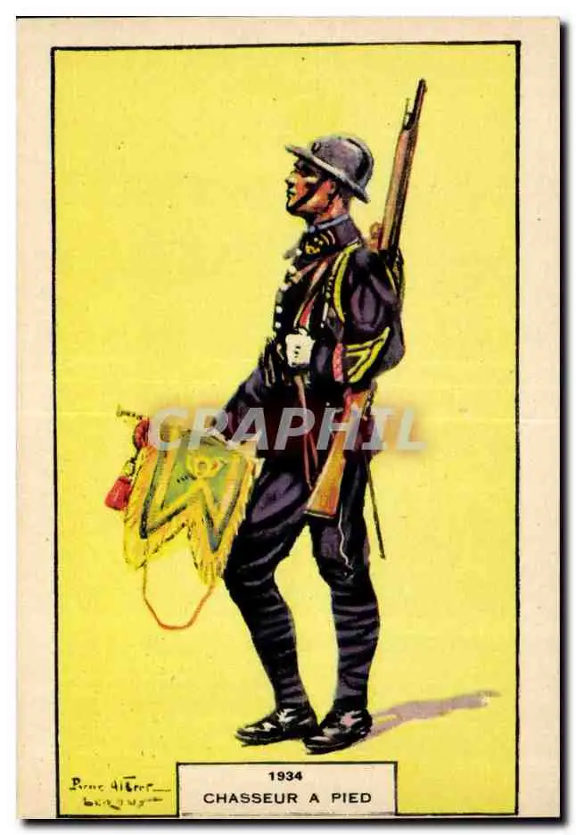 Cartes postales Fantaisie Militaria 1934 Chasseur a pied Uniforme