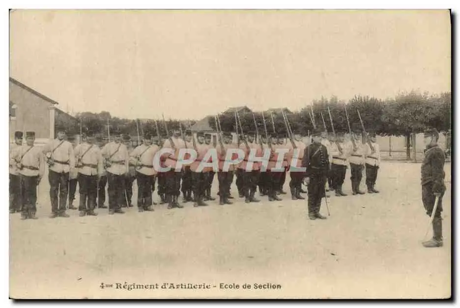 Cartes postales Fantaisie Militaria 4eme regiment d'artillerie Ecole de section