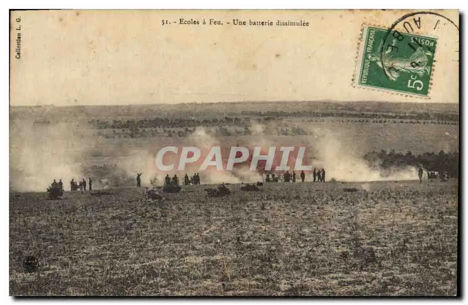 Cartes postales Fantaisie Militaria Ecoles a feu Une batterie dissimulee