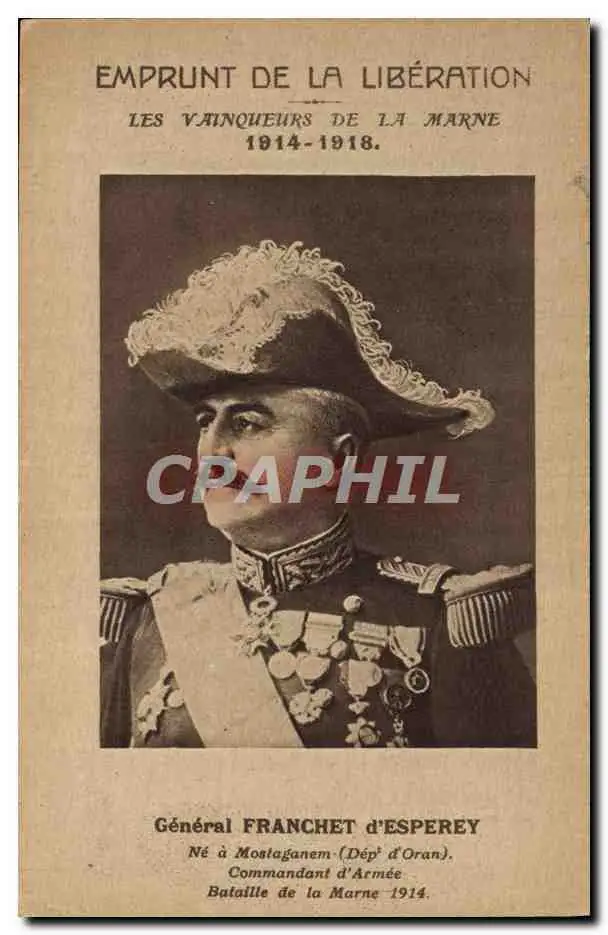 Cartes postales Fantaisie Militaria Emprunt de la Liberation Vainqueurs de la Marne General Franchet d'Espere