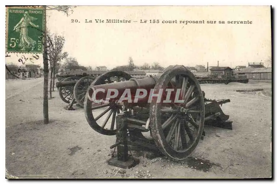 Cartes postales Fantaisie Militaria Le 155 court reposant sur sa servante