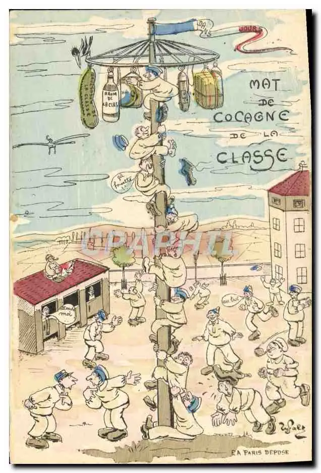 Cartes postales Fantaisie Militaria Mat cocagne de la classe