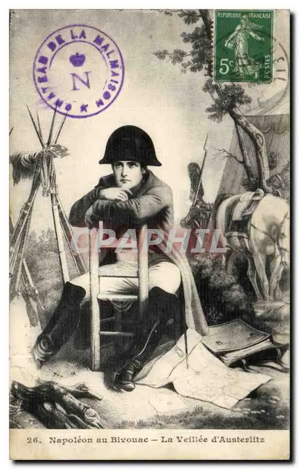 Cartes postales Fantaisie Napoleon au bivouac La veillee d'Austerlitz Militaria
