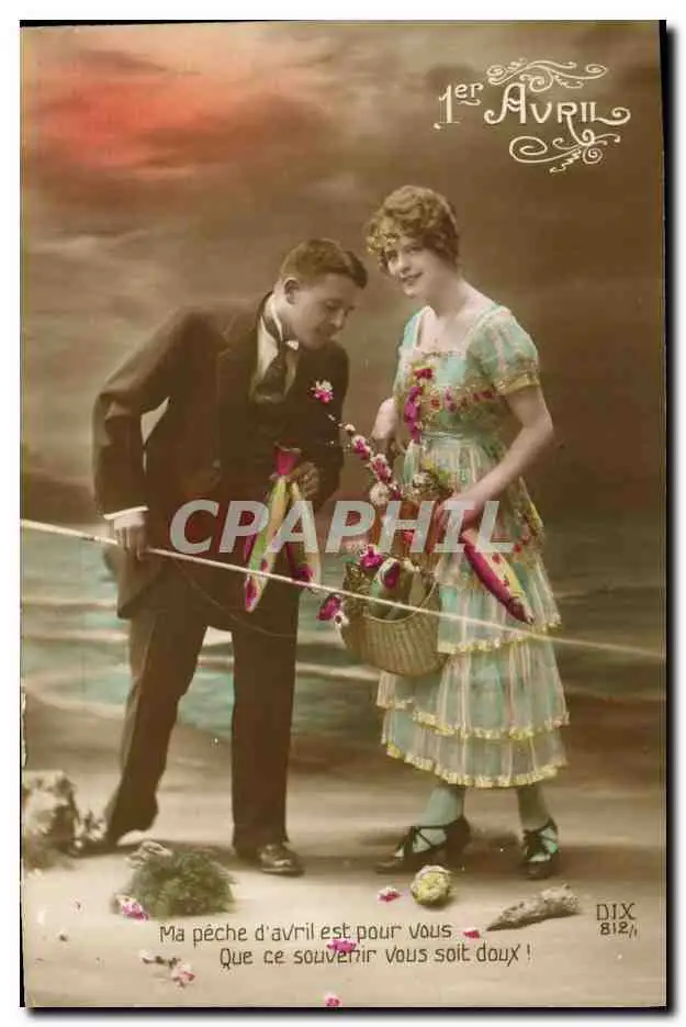 Cartes postales Fantaisie Paques 1er Avril Femme Peche