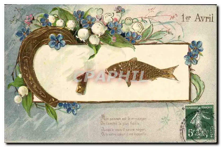 Cartes postales Fantaisie Paques 1er Avril Fer a cheval Fleurs