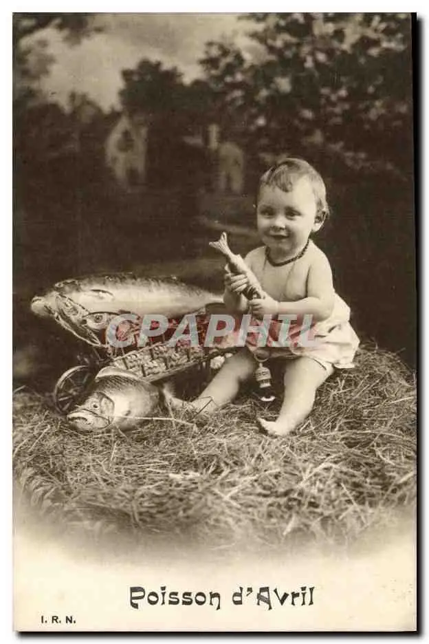 Cartes postales Fantaisie Paques Poisson Enfant Bebe