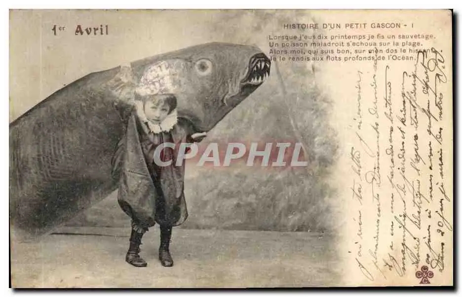 Cartes postales Fantaisie Paques Poisson Enfant Histoire d&#39un petit garcon
