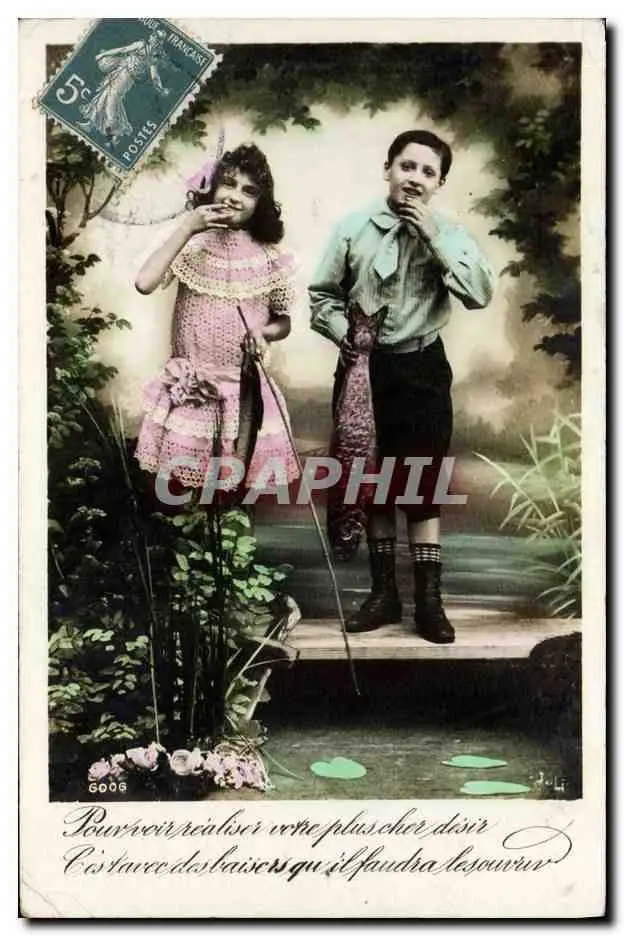 Cartes postales Fantaisie Paques Poisson Enfants