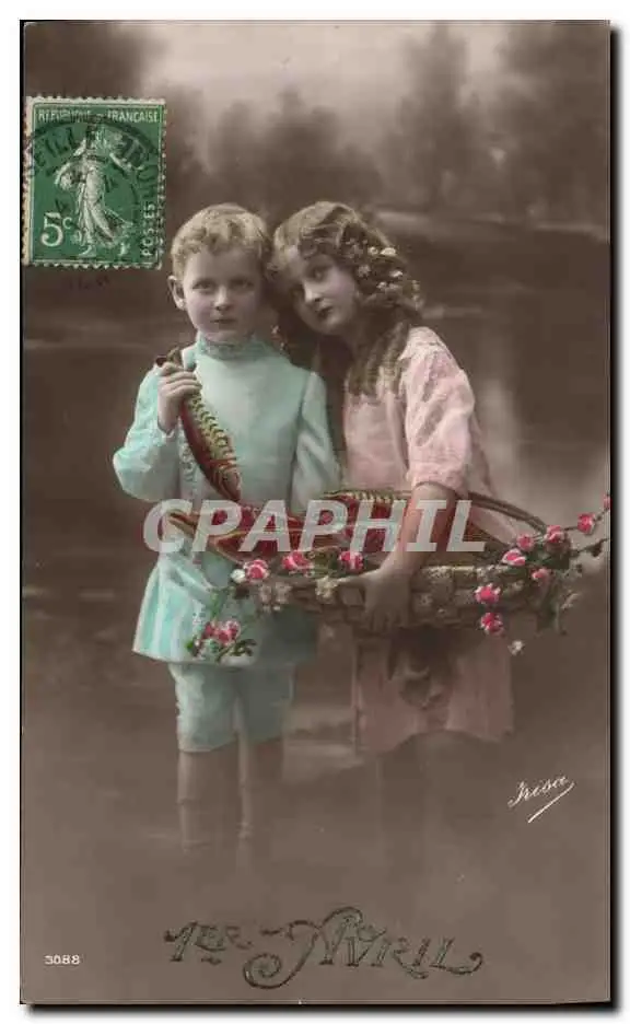 Cartes postales Fantaisie Paques Poisson Enfants 1er Avril