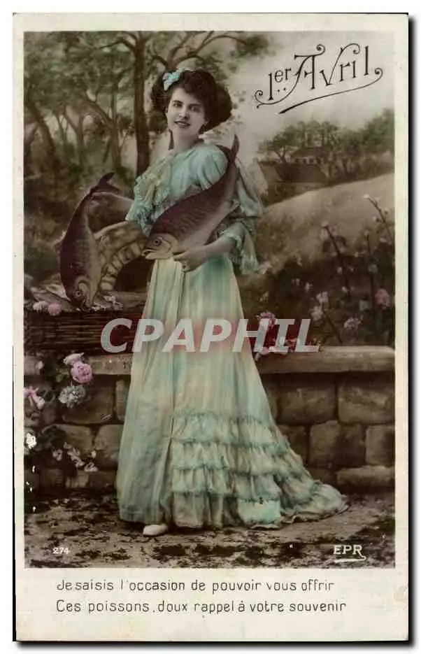 Cartes postales Fantaisie Paques Poisson Femme