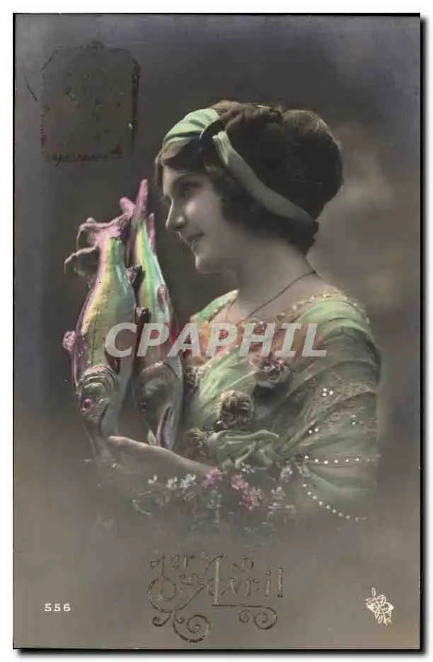 Cartes postales Fantaisie Paques Poisson Femme