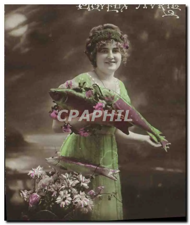 Cartes postales Fantaisie Paques Poisson Femme