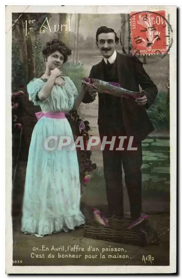 Cartes postales Fantaisie Paques Poisson Femme