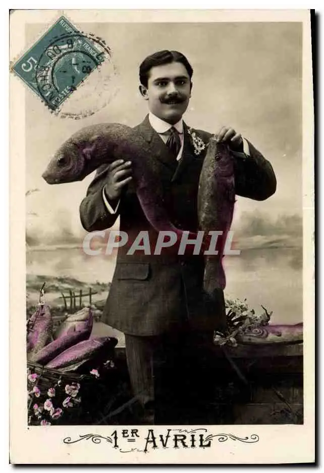 Cartes postales Fantaisie Paques Poisson Homme 1er Avril