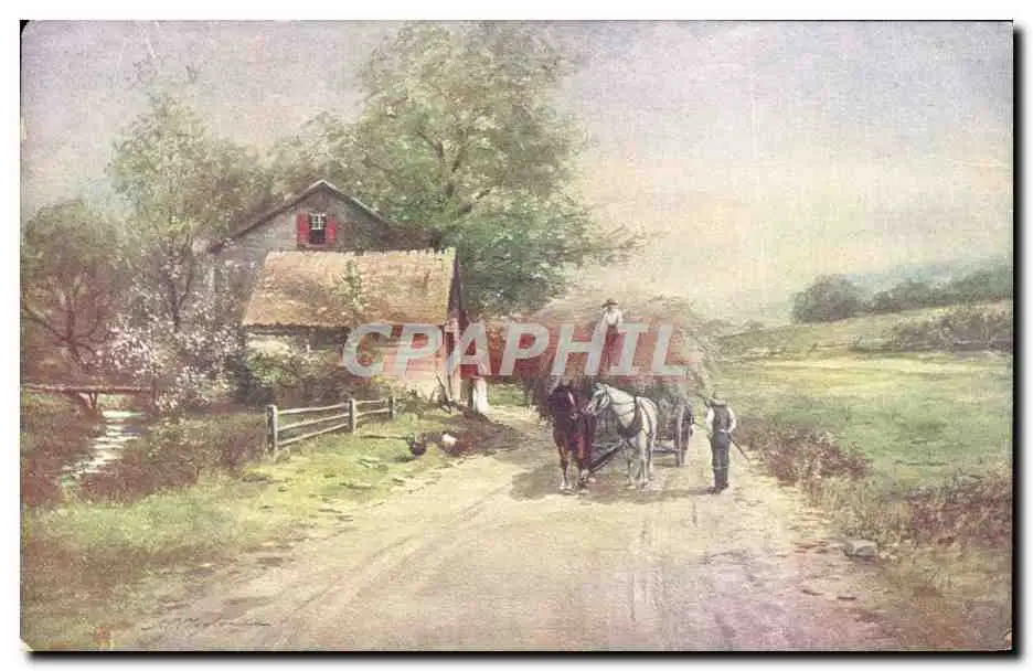 Cartes postales Fantaisie Paysans Attelage Chevaux