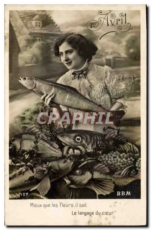 Cartes postales Fantaisie Poisson 1er Avril Femme