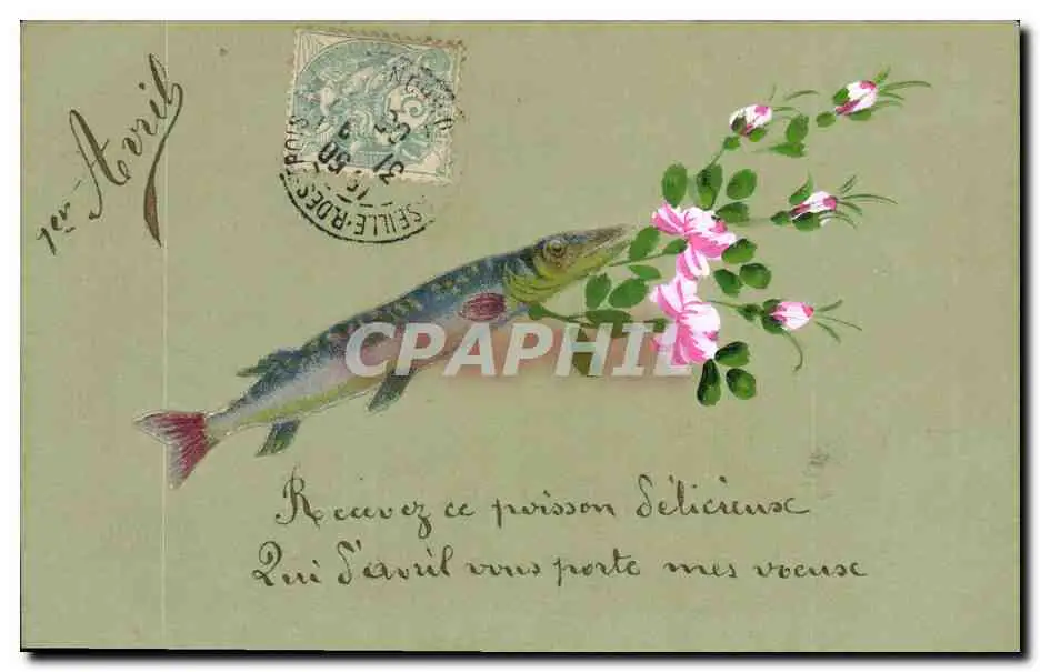 Cartes postales Fantaisie Poisson 1er Avril Fleurs