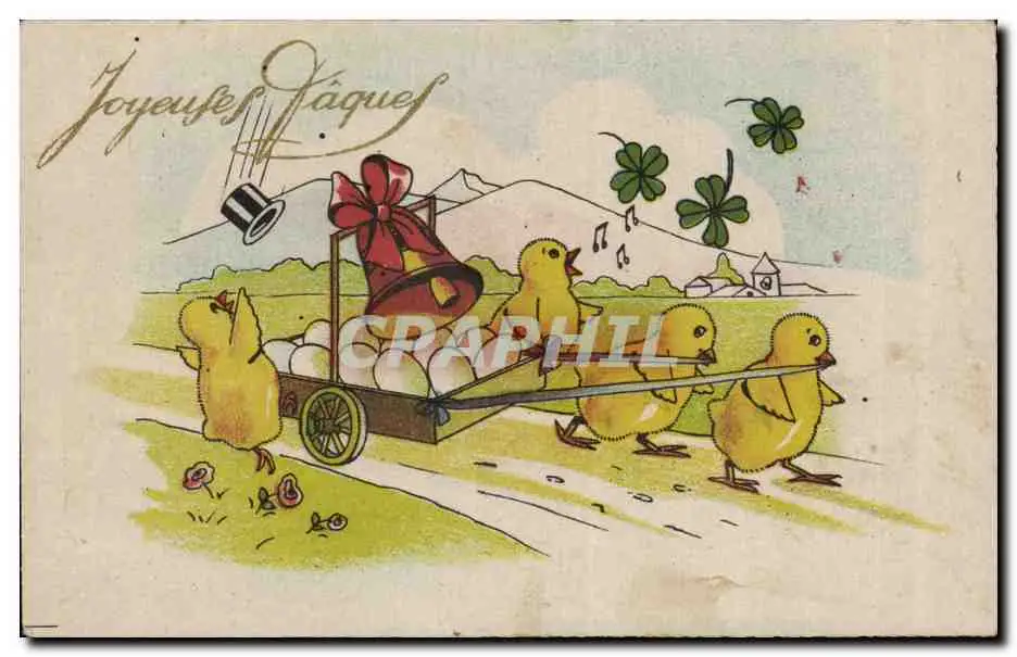 Cartes postales Fantaisie Poussins Oeufs Paques Easter