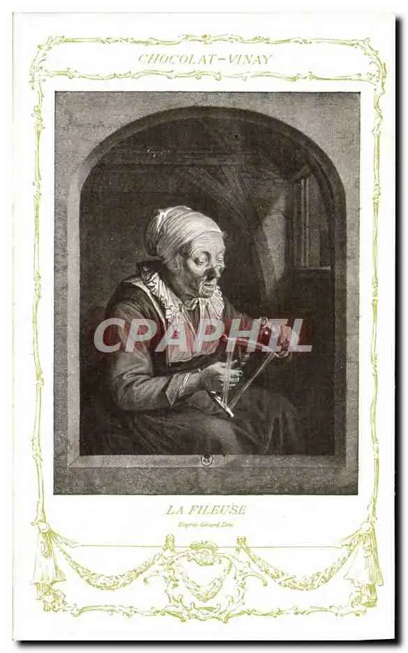 Cartes postales Fantaisie Publicite Chocolat Vinay La fileuse Gerard Dou