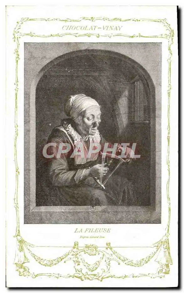 Cartes postales Fantaisie Publicite Chocolat Vinay La fileuse Gerard Dou