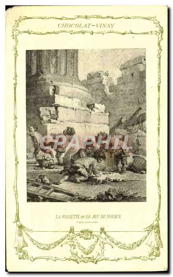 Cartes postales Fantaisie Publicite Chocolat Vinay La fossette ou le jeu de noyaux Saint Aubin Enfants