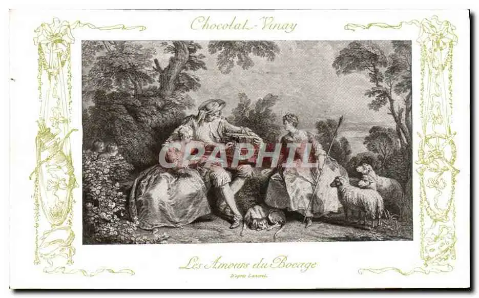 Cartes postales Fantaisie Publicite Chocolat Vinay Les amours du bocage Lancret Moutons