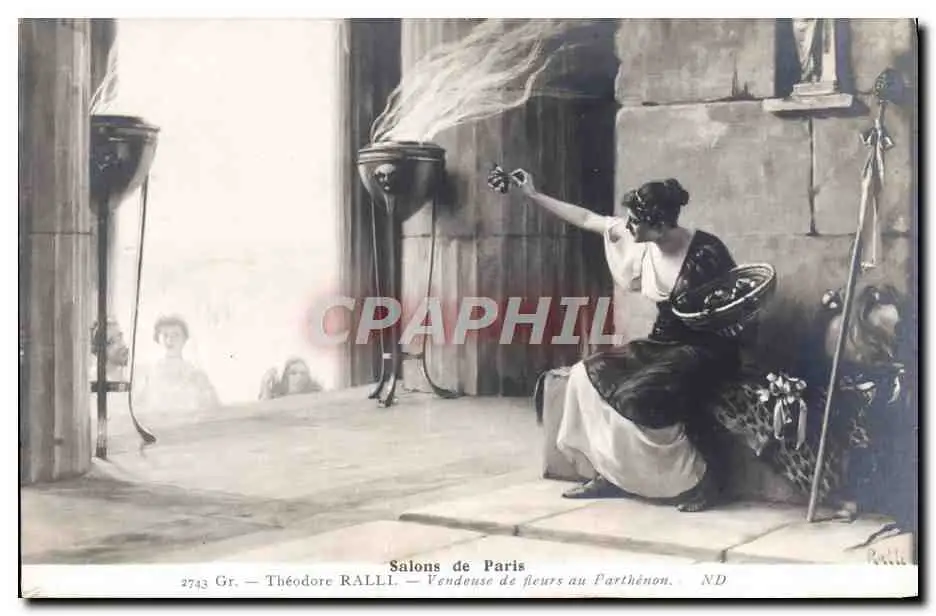 Cartes postales Fantaisie Salons de Paris Theodore Ralli Vendeuse de fleurs au Parthenon