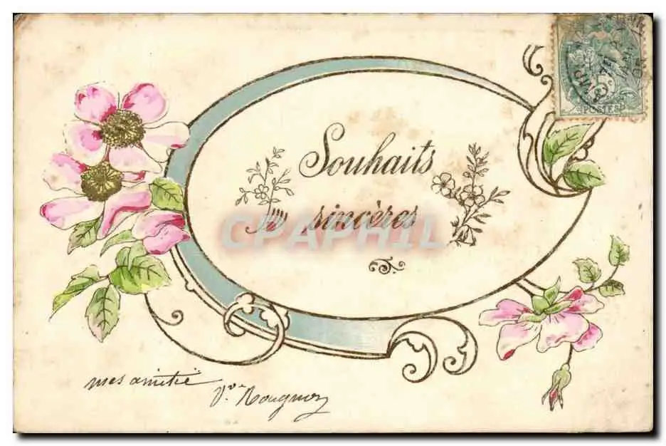 Cartes postales Fantaisie Souhaits sinceres (fleurs)