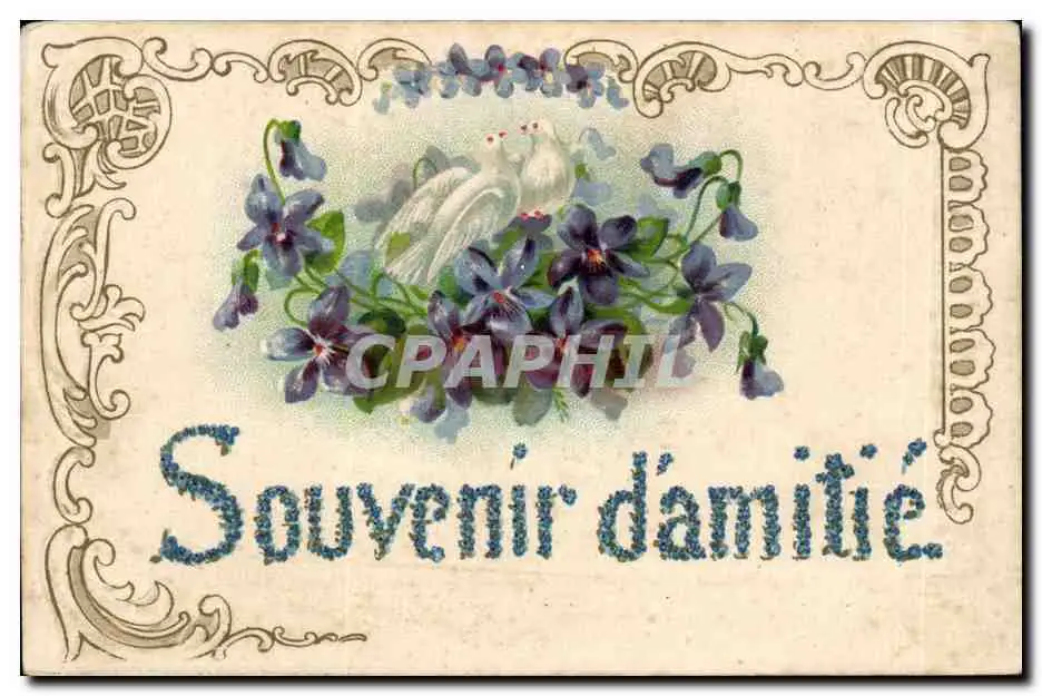 Cartes postales Fantaisie Souvenir d'amitie (colombes)