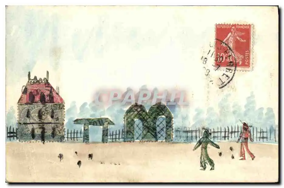 Cartes postales Fantaisie Timbres coll�s sur carte