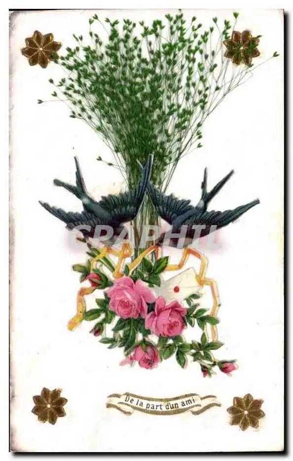 Cartes postales Fantaisie de la part d&#39un ami (hirondelle) DEcor en relief Splendide