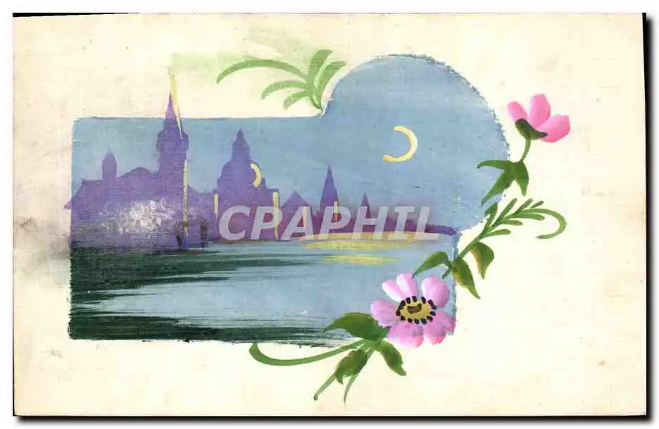 Cartes postales Fantaisie (dessin a la main ) Ville Fleurs