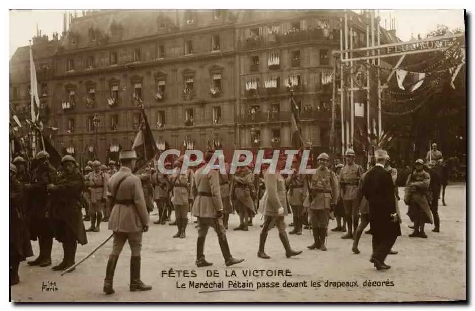Cartes postales Fetes de la Victoire Le Marechal petain passe devant les drapeaux decores Miltiaria