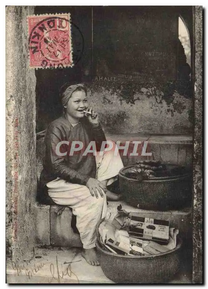 Cartes postales Foklore Tabac Indochine Petite marchande de tabac a l'entree de la concession Vietnam TOP