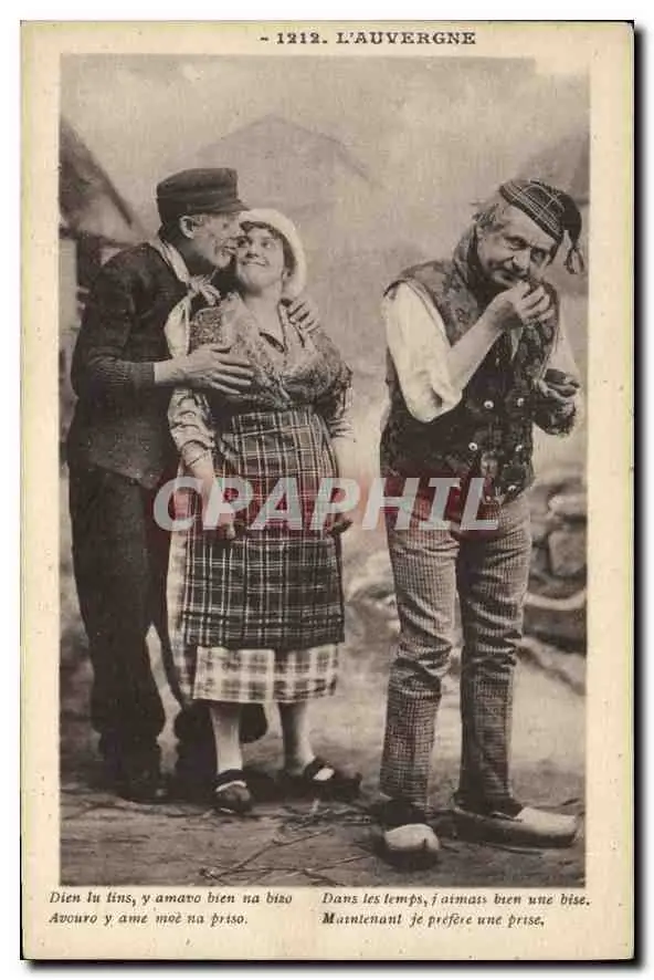 Cartes postales Folklore 1212- L'AUVERGNE. Dans les temps Jamais bien une bise Maintenant je prefere une prise